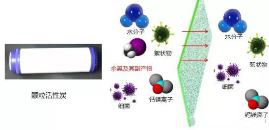 顆粒活性炭:顆粒細膩的活性炭濾芯為(wéi)您去除了溶(róng)解在水中的所有(yǒu)餘氯及其副產物。
